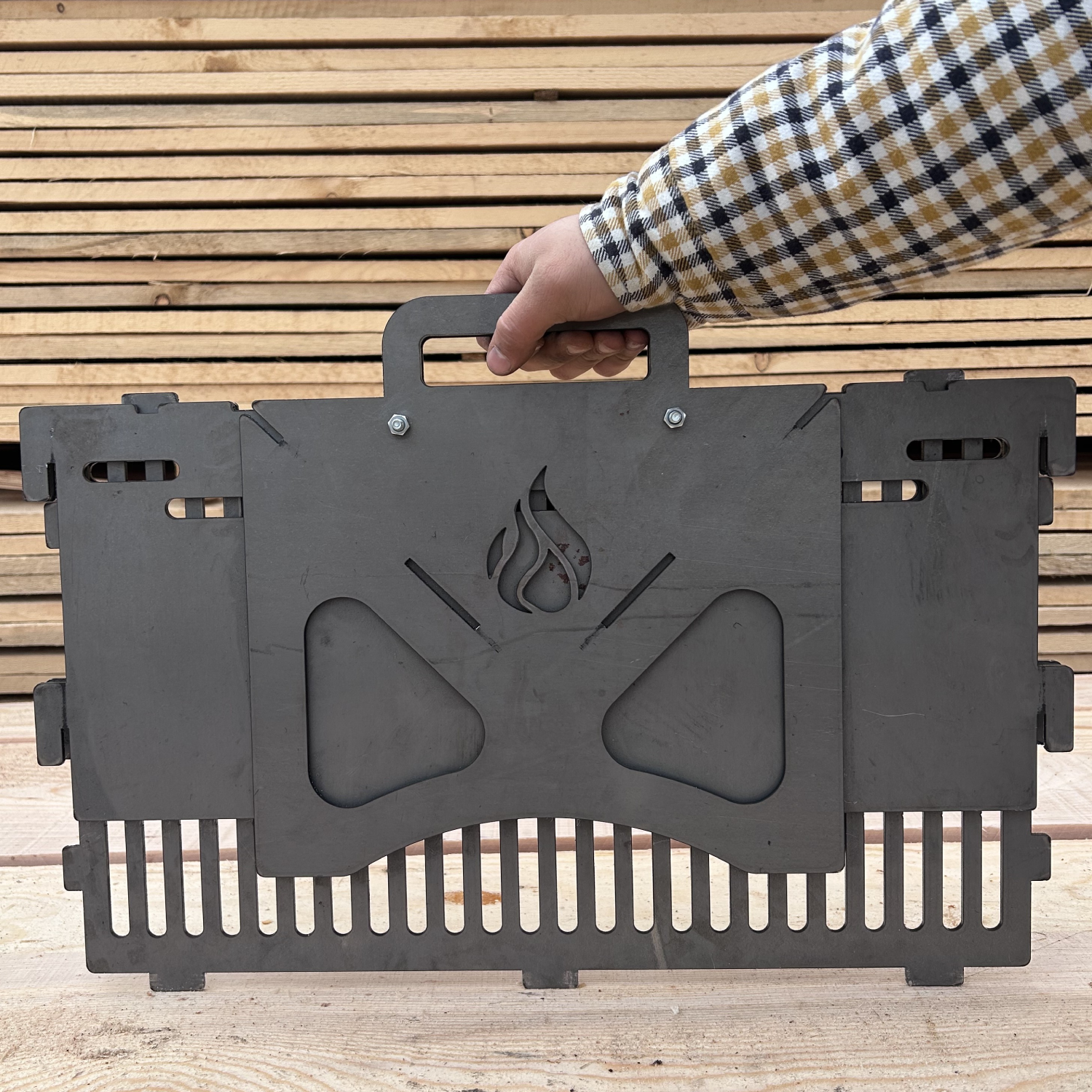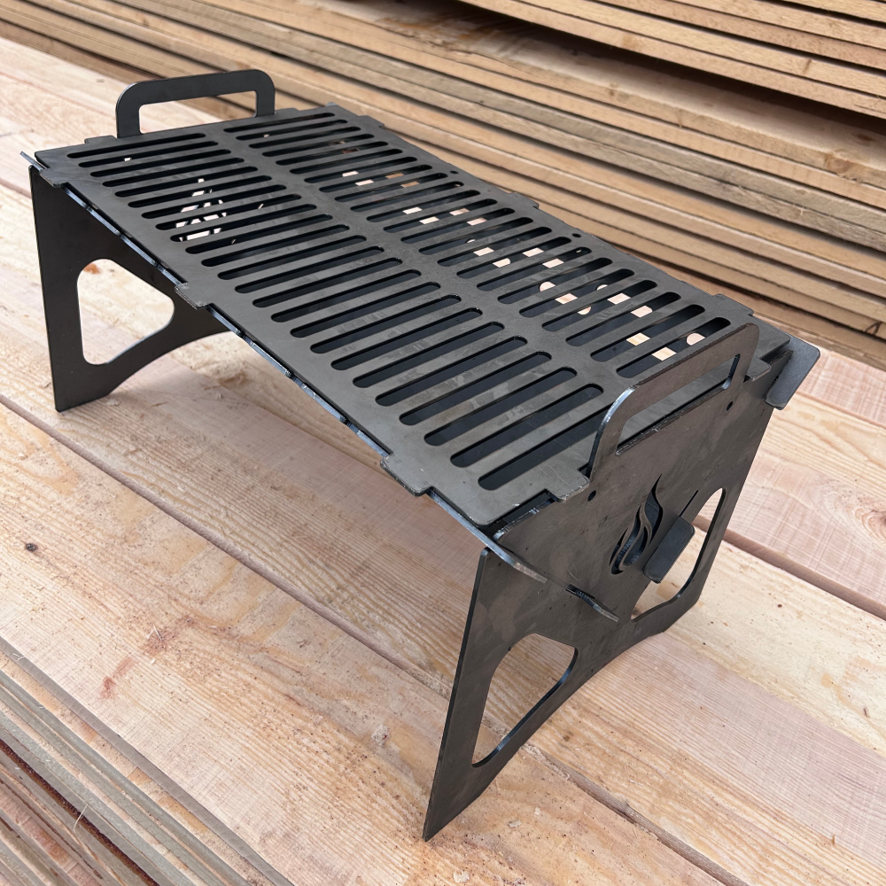 - Oțel de înaltă calitate: Confecționat din oțel robust, rezistent la temperaturi ridicate și uzură, grătarul garantează o durată de viață lungă și o stabilitate excelentă pe orice tip de teren.